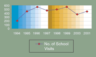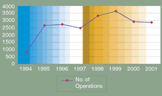 The total number of patients treated from 1994 to 2001 was 453,220 -as outpatients at the community level. The total number of operations done during the same period was 21,452. Of these, about 99% of cases were for cataract surgery.