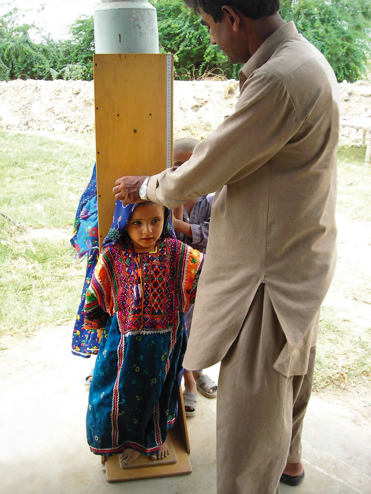 Measuring height to assess nutritional status. PAKISTAN. ©  Muhammad Fawad