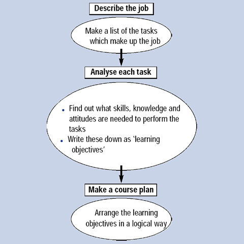 When you have finished analysing all the tasks, you will have a large number of learning objectives (Table 2). These now have to be fitted into a timetable. As you do this, you have to keep the following in mind: