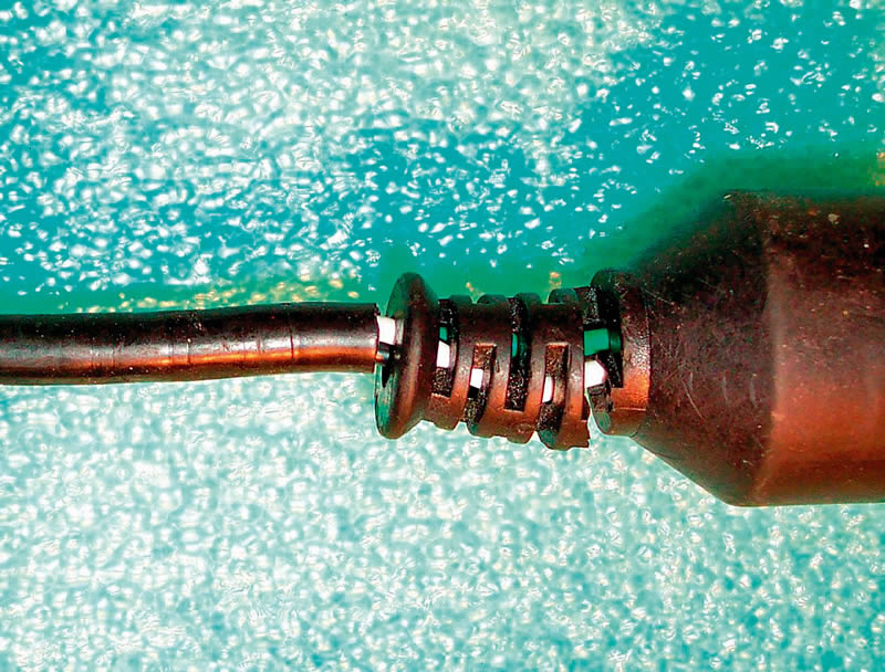 Pulling on the cord instead of on the plug can damage the wires. Check that equipment is plugged in properly and that the cord is not in danger of shorting (for example, if it is exposed to water or steam) or in danger of being cut. Handle plugs (or connectors) with care. A break in a wire inside the plug casing is hard to find and causes equipment to work intermittently. This can result from bending the wire at the same place or unplugging from the socket by pulling on the cord.