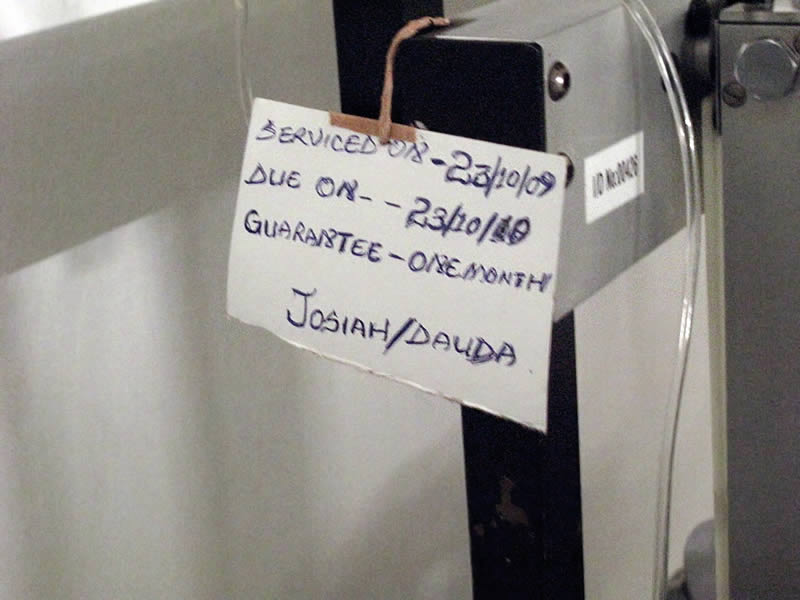 The preventative maintenance schedule for users can be accompanied by a weekly or monthly ‘tick sheet’ near the item of equipment, with a space for each day so that users can date and sign it, thereby showing that they have carried out the required tasks. This may include a space for users to indicate what spare parts, such as bulbs, were used. On a regular basis, the list of spare parts used should be noted in the central maintenance and repair record so that more spare parts can be ordered.