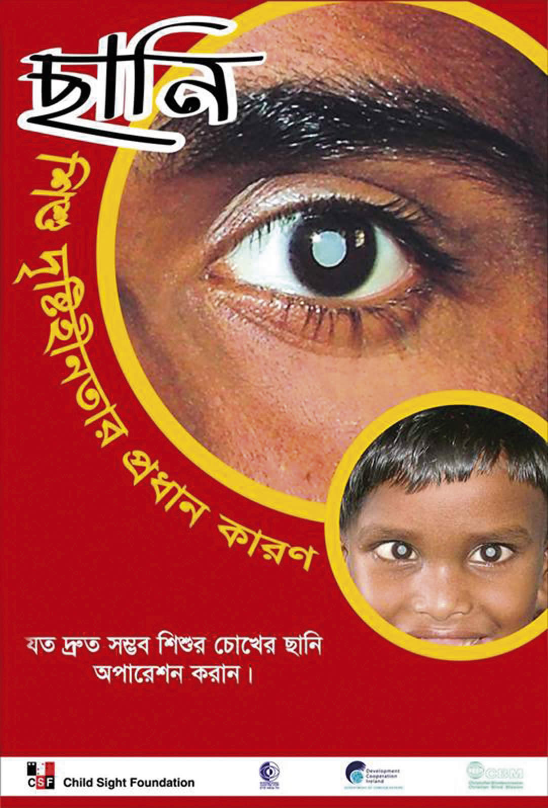Simple but locally appropriate training and communication materials can contribute to the success of the key informant method. In Bangladesh, a standard training manual for the community mobiliser and a flipchart (flipbook) for key informant training has been developed in the local language, Bangla (an English version is available from the author). Simple, colourful posters (Figure 1) can be distributed by key informants at community level to increase community awareness about childhood blindness and to increase the reporting of children who are blind. Local radio and television can be used to announce activities. Small leaflets can be distributed in large quantities during public gatherings: this is a low-cost, but effective, means of mass communication.