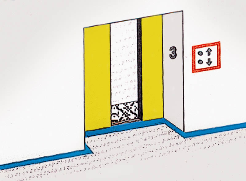 If there are lifts, put a brightly coloured arrow or ring around the call button, or paint the door a different colour (Figure 2).