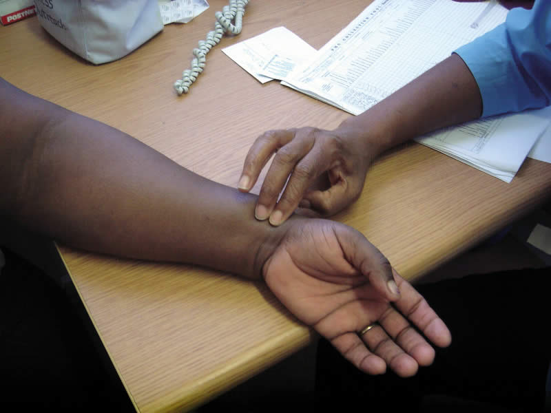 Before surgery, eye patients must be assessed for their suitability for surgery. Taking the pulse allows us to find out what the patient’s heart rate is and to assess the strength, regularity, and character of the pulse. Irregularities might indicate a heart problem and must be investigated.