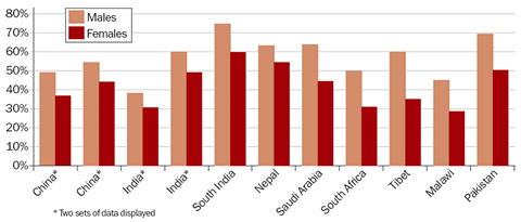 Figure 1 shows the proportion of blind who are female in Asia and Africa.1 Why does this imbalance occur?