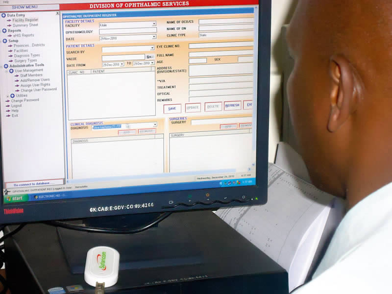 - The Division of Ophthalmic Services can use the system to produce reports based on facility, district, or province as well as disease category, treatment, or type of operation.