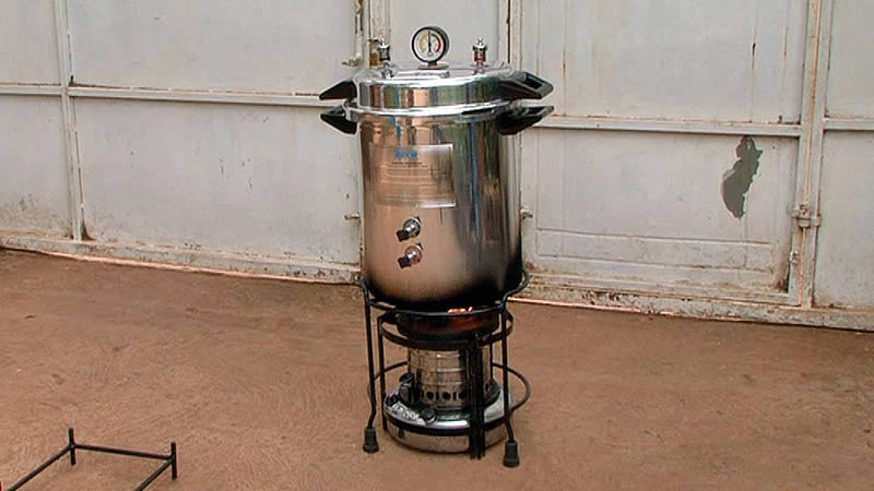 Check both taps are closed and place the autoclave on a kerosene burner. Some autoclaves are designed to be heated using an electrical supply.