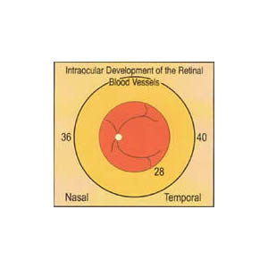 (ii) When should screening be done?: The natural progression of ROP must be understood to determine the time of screening. Other studies have clearly demonstrated that the natural history of retinal blood vessel development and the clinical course of ROP is related to the post-conceptional age and not to the post-natal age, though the latter is still being followed by some nurseries in their screening programmes.8,11 In the CRYO ROP study the median time of occurrence of stage 1 ROP was 34.3 weeks of post- conceptional age (PCA), while threshold disease was seen to occur at 33.6-42 weeks of PCA (median 36.9 weeks) irrespective of age at birth. 8,11 Similarly, Fielder et al found that Stage 1 ROP developed at 32.7-37.0 weeks (median 34.6 weeks) of post-menstrual age (PMA) and stage 3 developed at 35.6-39.0 weeks (median 37.1 weeks) of PMA. Thus, the events of ROP correlate with the age after conception and not the chronological age after birth (post-natal age).