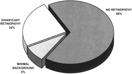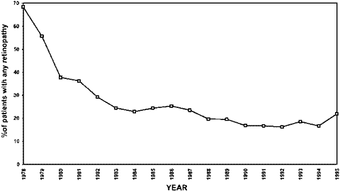 Diabetes remains the commonest cause of blindness in the working age group in most Western societies, although the level may be diminishing with effective early treatment.1, 2Multicentre studies have demonstrated that the incidence of blindness from diabetic retinopathy (DR) can be significantly reduced by early intervention with laser treatment.3,4 This applies to both proliferative retinopathy and maculopathy, apart from ischaemic maculopathy which is untreatable. However, once DR is symptomatic, with significant visual loss, the chance of recovering vision is greatly reduced. Laser treatment may not be possible, and even vitrectomy may not lead to visual gain.