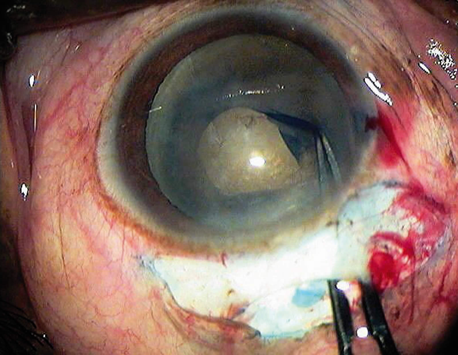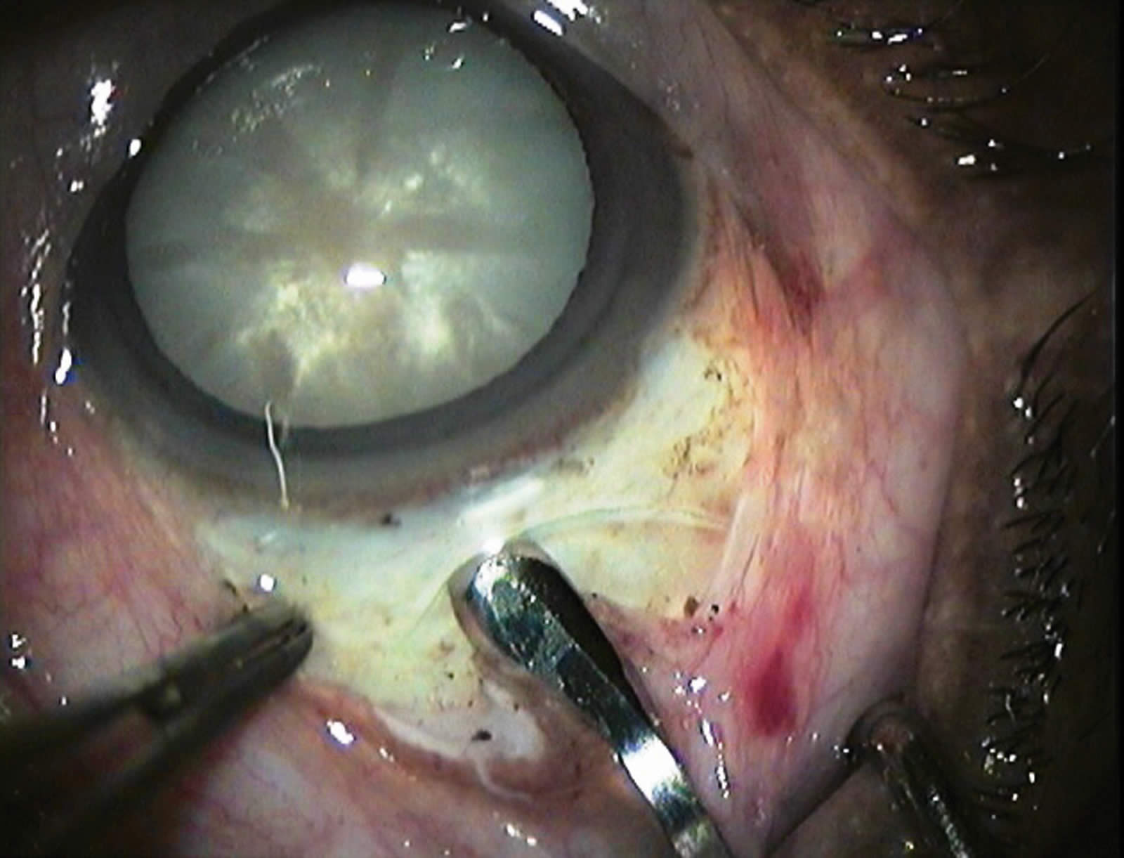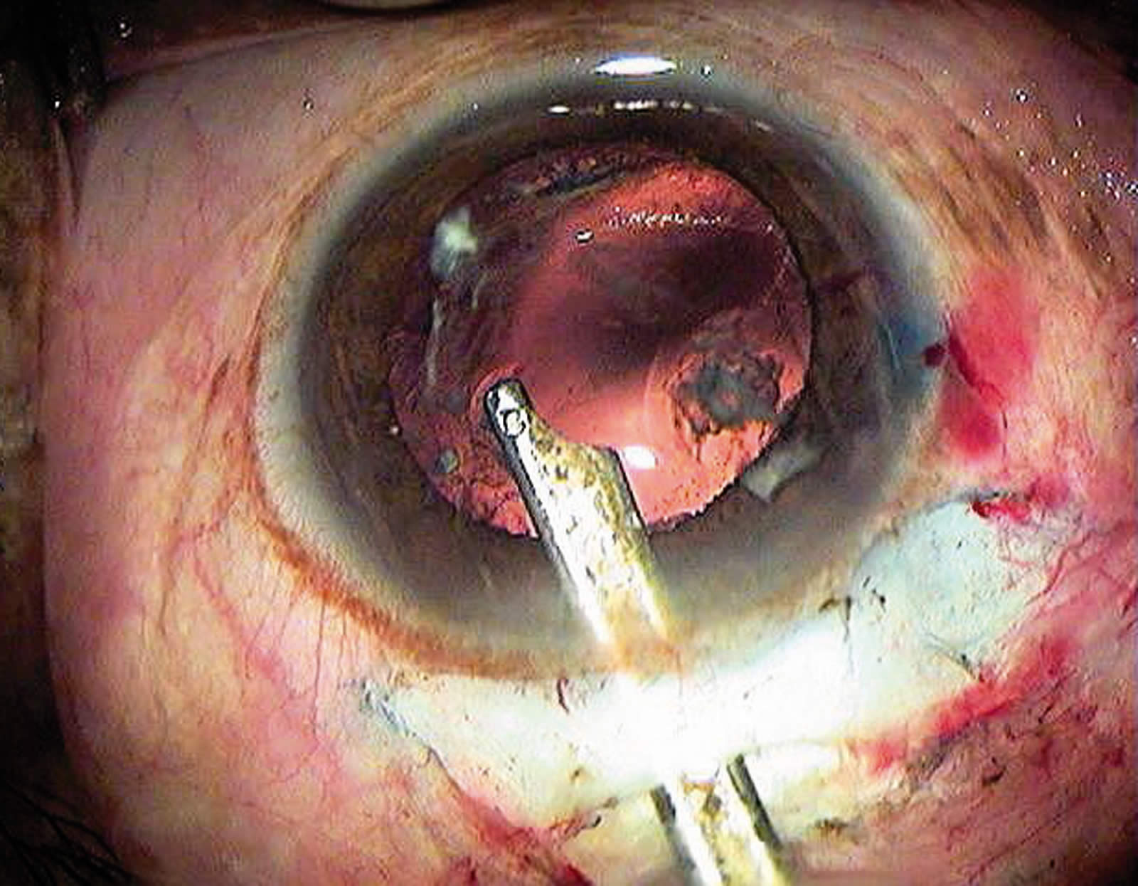 While lifting the nucleus into the anterior chamber (Figure 8), special care is required in patients with pseudoexfoliation and in older patients with weak zonules.