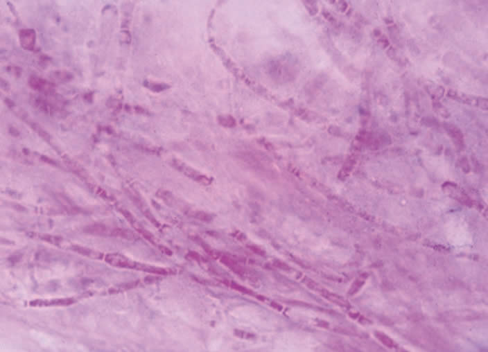 Figure 10. Fungal hyphae stained with lactophenol cotton blue. © PA Thomas