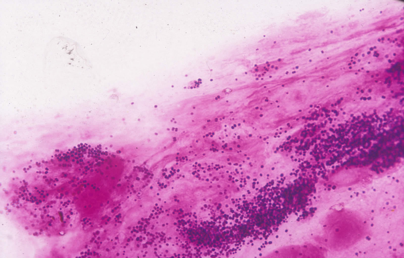 • Gram positive (+ve) cocci most commonly associated with suppurative keratitis are the Staphylococci (Figure 5) and Streptococci (Figure 6, Streptococcus pneumoniae).