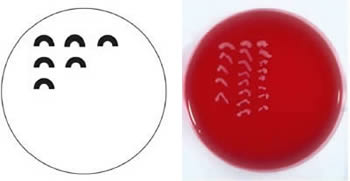 • Gently smear material on the surface of agar in C-streaks (Figure 3); taking care not to puncture the surface of the agar.