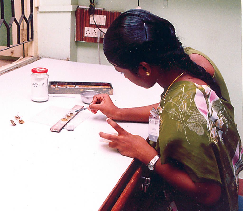 At Aravind we recruit polytechnic graduates. They have two or three years of engineering education and training beyond high school. With some extra on-the-job training in our instruments maintenance laboratories they are able to carry out all the tasks described above and also teach others. We have found from our experience that women will often do a better job then men! Technicians at Aravind also make spare parts for some instruments and are also encouraged to build simple equipment used in eye care.