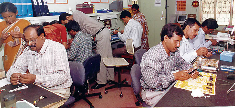 Following the basic six-week course, we offer a trainer’s course. Persons taking up this training will be able to organise similar training courses in their own work places. The West African Health Community has taken advantage of this and three technicians from that region underwent the trainer’s course. With these technicians and two more technicians trained in earlier years as additional hands, a training centre was established in Nigeria. Two persons from Aravind were invited to Nigeria to take part in their first training course run in September-October 2000. Subsequently, the West African team has run two more courses. One of the technicians from Nigeria has established a maintenance facility in his home town, servicing ophthalmic and other medical instruments and employing others. A technician from Pakistan, trained in Madurai, is running a technician training course in his country.