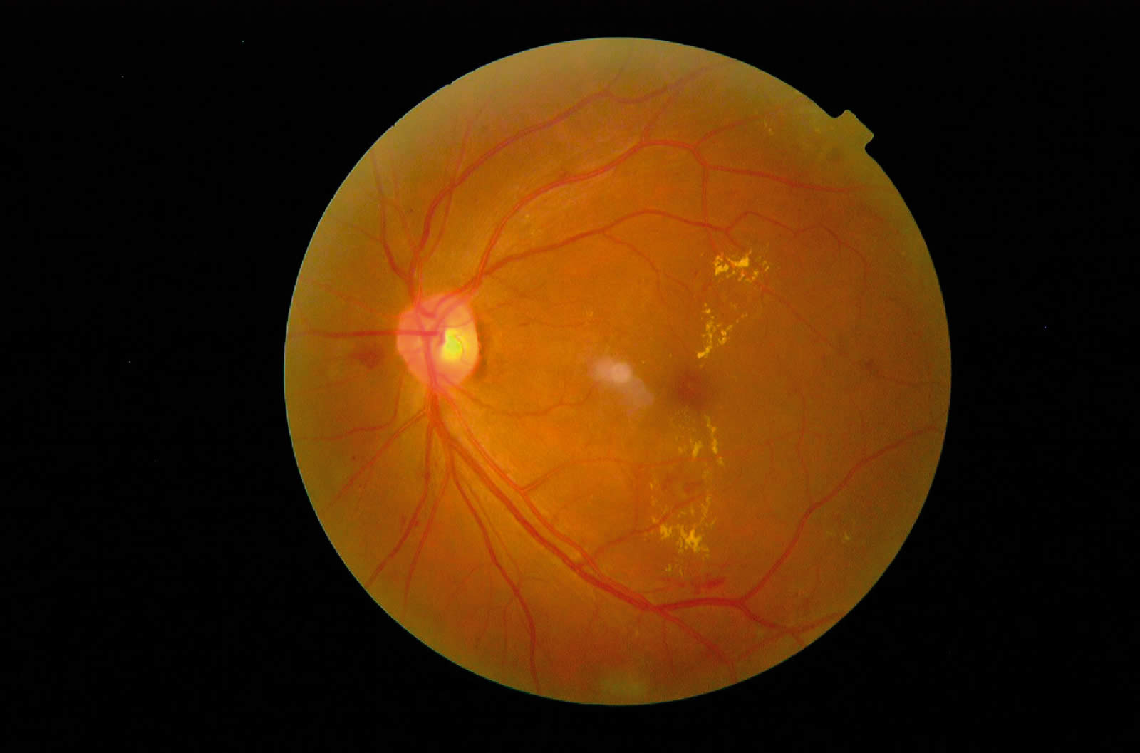 Clinically significant macular oedema with hard exudates encroaching on the fovea, identified using photographic screening in an asymptomatic patient. © Sangita Sagar