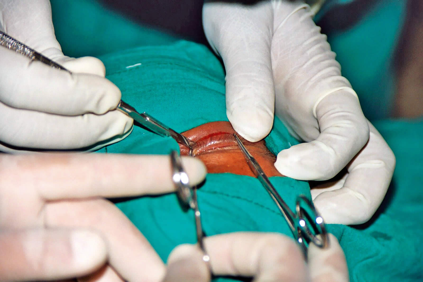 6. Careful sterilisation of instruments and sutures and thorough pre-operative cleaning of the lids and conjunctival sac with povidone iodine 2% solution are vital, as bacterial infection is commonly associated with trichiasis and increases the risk of recurrence.