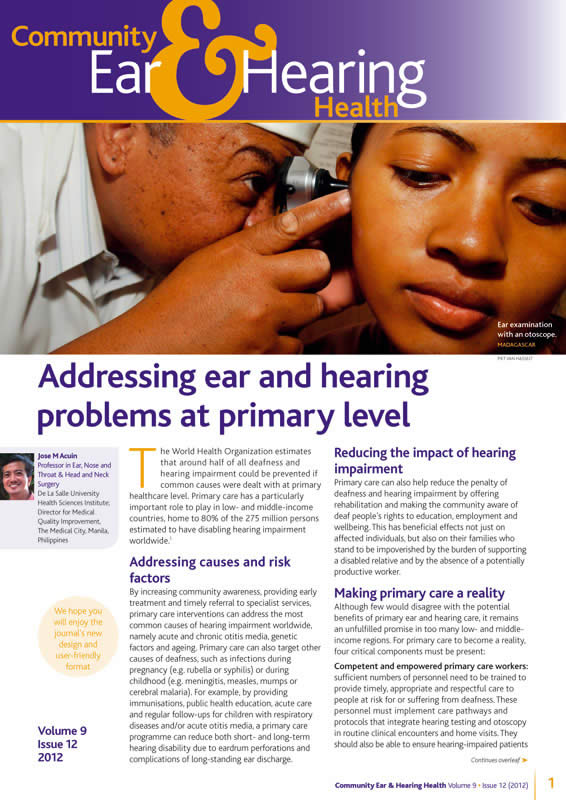 Like the Community Eye Health Journal, this journal is sent free of charge to readers from low- and middle-income countries. It aims to promote ear and hearing health by offering continuing education for all levels of health worker. To subscribe, please email: Joanna.anderson@lshtm.ac.uk