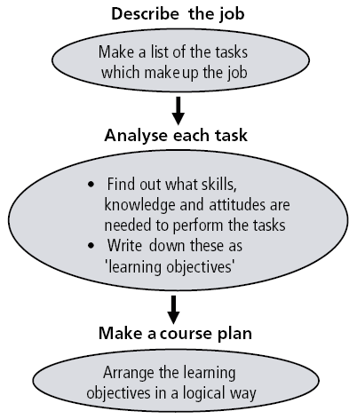 In health care, the reason for training is clear – we expect those who are being trained to do their jobs well. This means two things. Firstly, we have to be quite clear about who is going to be trained to do the job we need, what class or rank of worker, from which area, with which background. Then we have to define exactly what the job is that we want the learners to perform. If we think carefully about it, we will see that a job is made up of tasks. We therefore have to start by listing the tasks that our health worker should be able to perform competently. How do we arrive at this list of tasks? Here are some ideas: