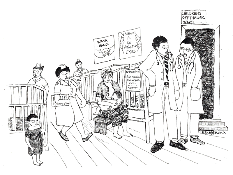 Ma-Anna thanked the nurse. She had been terrified of coming to the clinic, because she had heard that nurses chased away people who had not attended the baby clinic. But, for her, it had been impossible to come to the clinic because it was too far away and she had no money. It was because Musa, her only son, could no longer see that she had forced herself to come and see the nurse. Now she was glad she had come. When leaving the clinic, Ma-Anna turned around and asked, ‘Will Musa see again?’