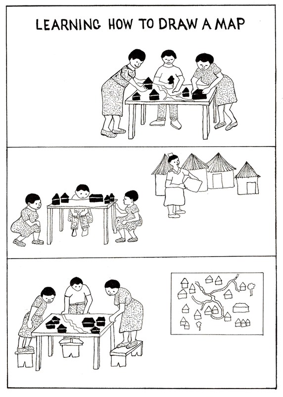 Lerisa’s drawings, simple as they were, helped to focus the group’s attention on the self-evaluation and acted as a trigger for discussion. Make a series of simple pictures that might encourage this sort of discussion amongst your own working team.