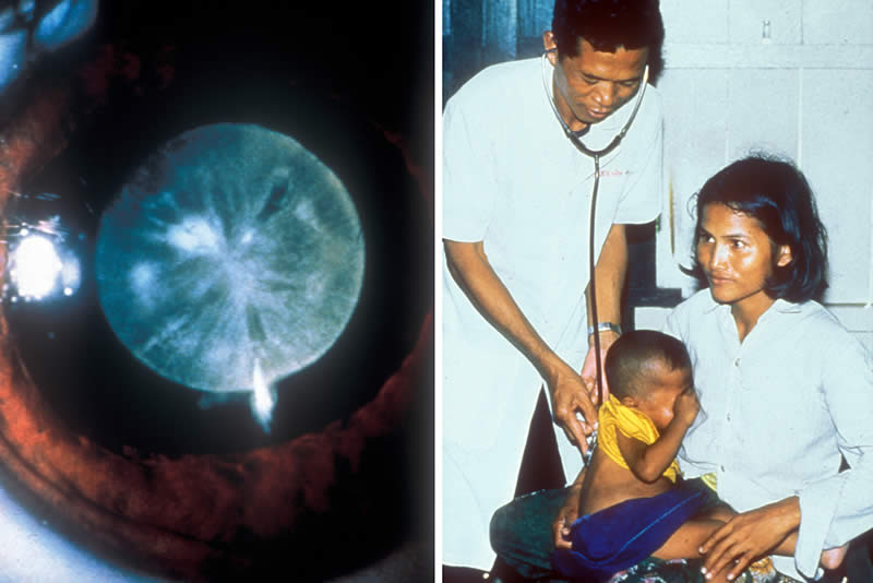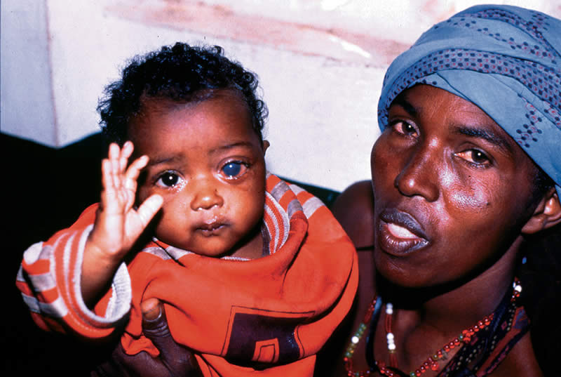 Over a million children in Asia and Africa are blind and the single commonest avoidable cause is corneal scarring, due mainly to vitamin A deficiency. In Africa, corneal ulceration leading to corneal scarring is often associated with measles infection, and in Asia severe diarrhoea may lead to acute vitamin A deficiency causing blindness. Other causes of corneal scarring are conjunctivitis of the newborn (ophthalmia neonatorum), herpes simplex infection and the use of harmful (traditional) eye medicines. These causes are all preventable or treatable.