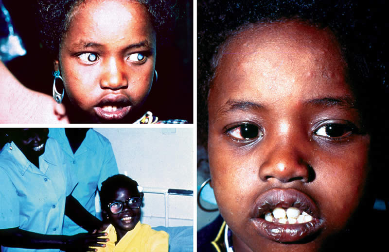 The child shown on the right is a 7-year old girl from Somalia who has just had surgery for congenital cataract. Ideally, surgery should have been carried out when she was younger. Remember to refer any child with a white pupil, or pupils, to the eye surgeon as soon as possible after this appearance is recognised.