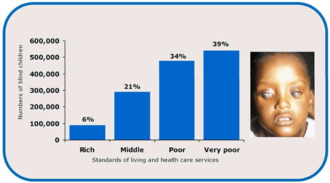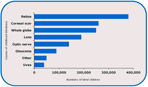 The exact number of children blind in the world is not known but it is estimated that the figure is approximately 1.4 million, with up to 500,000 new cases every year. Many of these children die within months after they become blind.